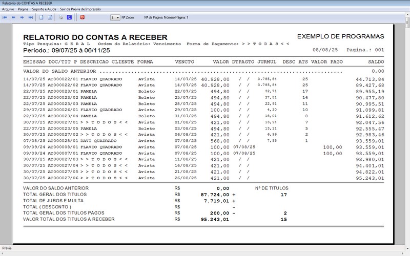 Relatório dos Atendimentos / Contas a Receber /