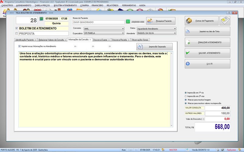 na impressão do Atendimento